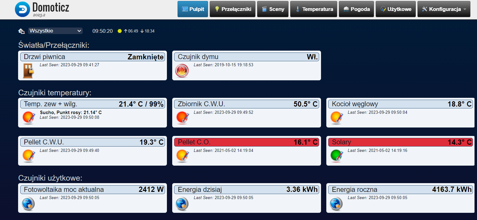 The system was integrated with Fronius solar inverter monitoring to track power production, as well as multiple environmental and safety sensors — including temperature, carbon monoxide, smoke, and door contact sensors. This combination provided the client with a unified overview of their home’s key parameters, accessible through an intuitive interface.