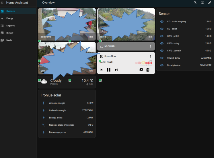 Key elements of the project included the deployment of temperature and energy sensors for real-time monitoring, IP cameras for enhanced security, and the integration of a Fronius solar power inverter to track and optimize renewable energy production. Additionally, the system was extended with weather forecast data to enable smart, predictive automation for energy and climate management.